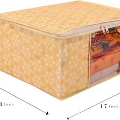 Non-woven Fabric Flower Design Clothes Wardrobe Organiser Set with Transparent Window and Zip Clothes Storage Bag Ideal for , Suit, Dress and Saree Packing Covers (Beige, Pack of 3)