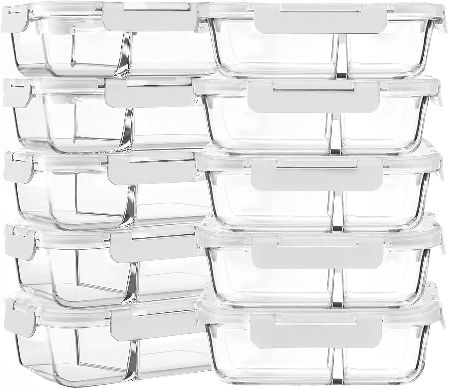 - PORTION CONTROL FEATURE:The portion control feature of the divided glass lunch containers allows you to regain control over your meals. The two compartments glass containers make it easy to organize your meals and keep your diet plan.