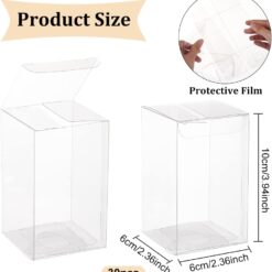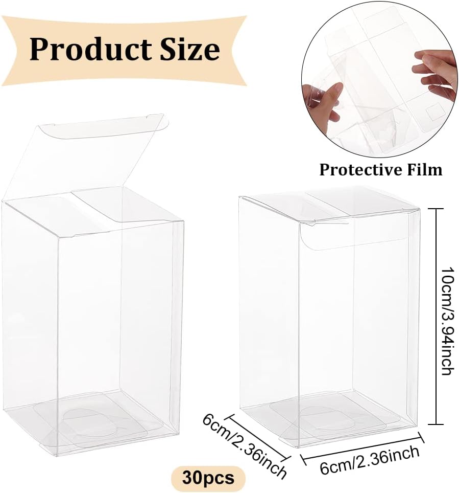 - [Package Includes]: 30pcs clear plastic gift boxes, measures 2.3×2.3×4″/6x6x10cm, rectangle after assembled