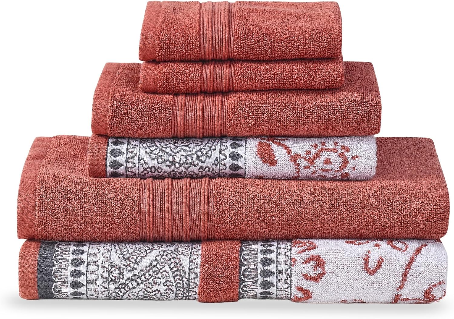 - SET INCLUDES: (2) Bath towels, (2) Hand towels, (2) Washcloths.