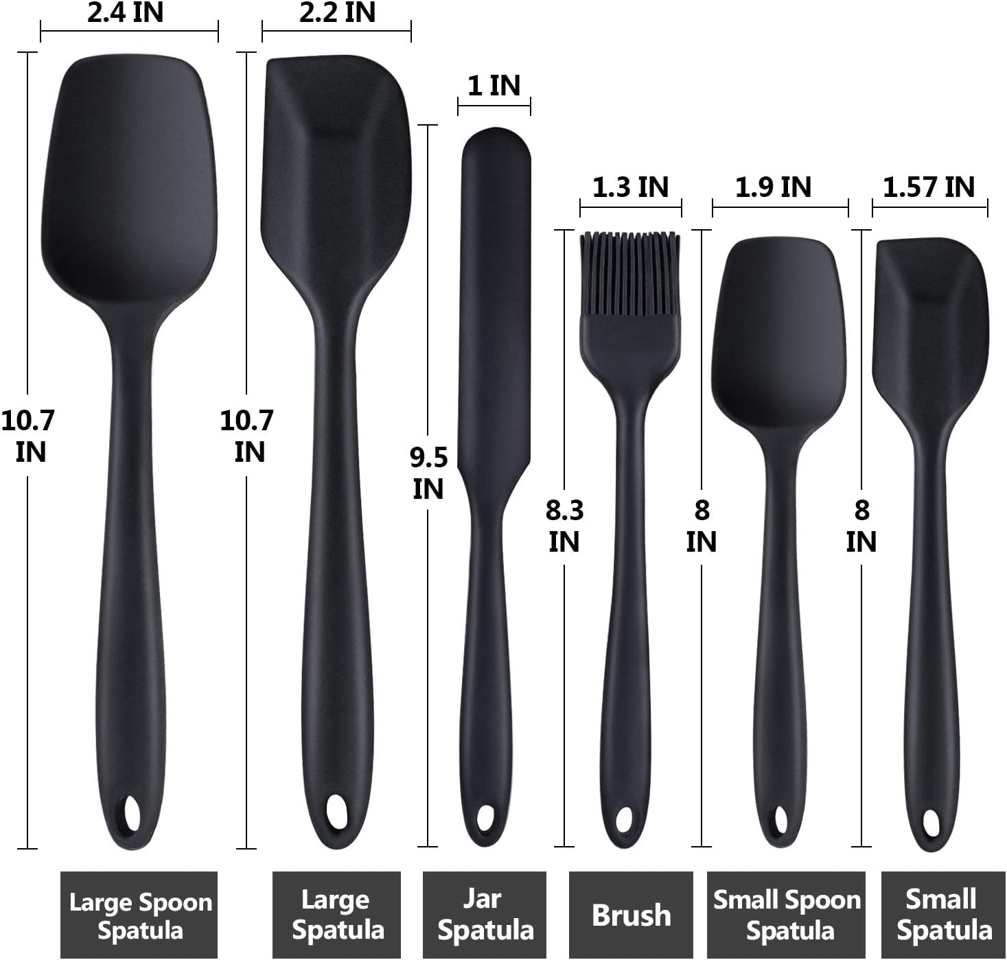 - A GOOD HELPER FOR COOKING AND BAKING&DISHWASHER SAFE:Our spatula great for baking, cooking, stirring, 6-Piece black spatula can meet all your kitchen needs that you can use them as a scraper spatula, icing spatula, baking or mixing spoon.Our Spatulas Silicone can be cleaned either by hand or in the dishwasher.
